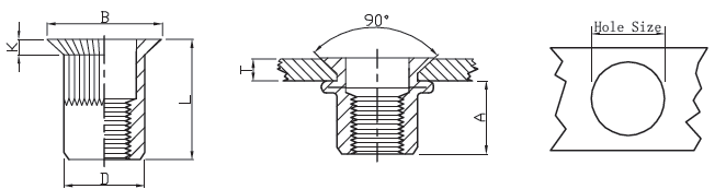 Heim / Produkte / Blinde Nieten Nüsse / Counterunk Head Round Body Rivet Nuts / Counterunk Head Knurled Body Rivet Nuttern / Stahl Counterunk Head Knurled Body Rivet Nuttern geschlossener Endtyp