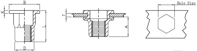 Stahl Flat Head Semi-Hex Body Rivet Nut Open Type